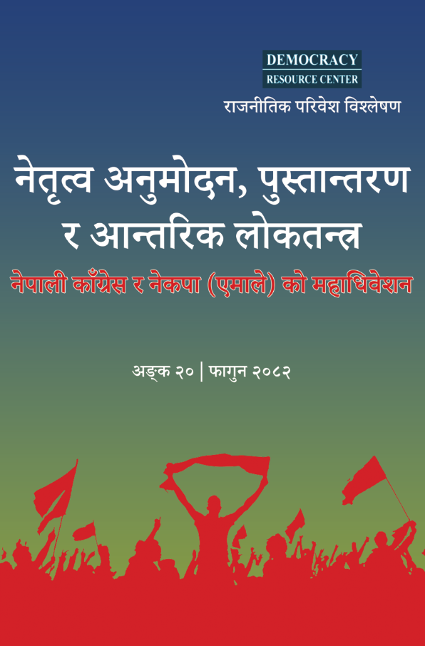 यस राजनीतिक परिवेश विश्लेषण नेपालको परिवर्तित राजनीतिक सन्दर्भमा नेपाली कांग्रेसको दोस्रो विशेष महाधिवेशन र नेकपा (एमाले) को एघारौँ राष्ट्रिय महाधिवेशनमा नेतृत्व अनुमोदन, पुस्तान्तरण र आन्तरिक लोकतान्त्र अभ्यासका पक्षमा केन्द्रित छ ।